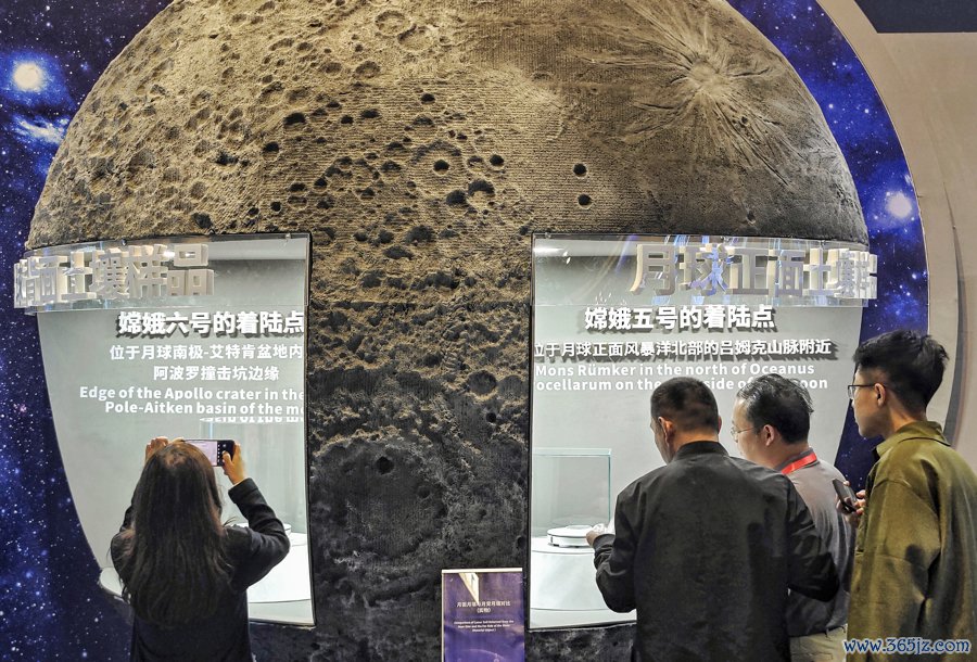 2025年4月24日,上海世博展览馆为航天爱好者开启一场天外之旅。中国航天日科普展示行径的月壤样品展示区东说念主气火爆。