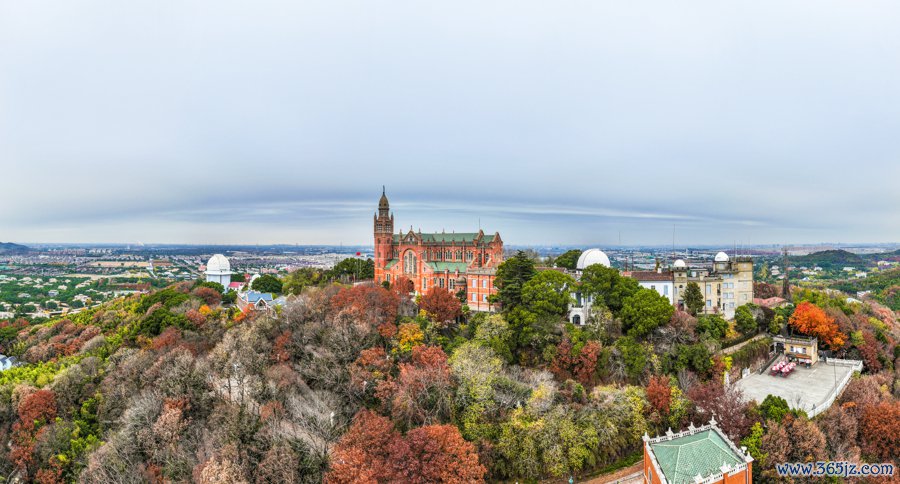 2025年12月13日,深秋的佘山颜色斑斓。佘山之巅,天文台与教堂静立,宛若童话世界。