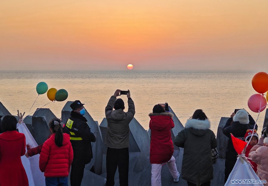 2025年1月1日,天然天气冰寒,200多名市民旅客依旧兴味盎然地来到金山嘴渔村,沿路迎接新年的第一缕阳光。