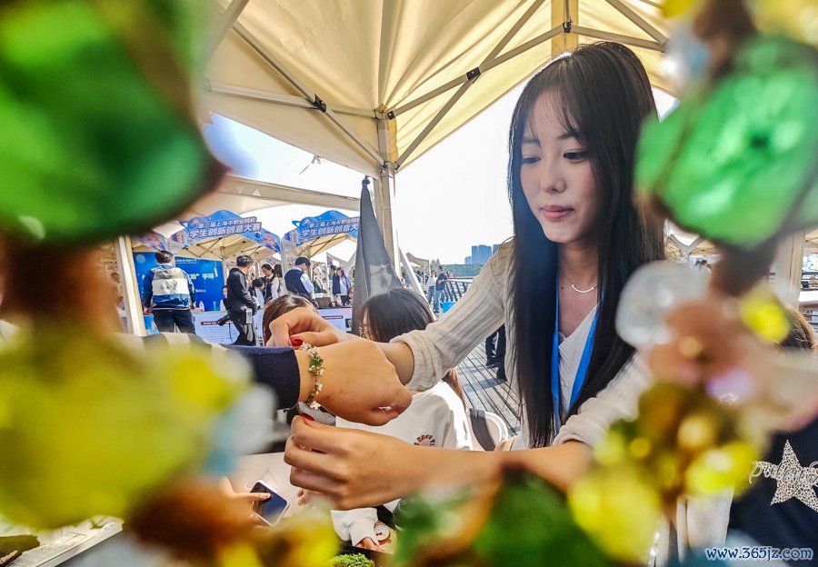 2025年11月15日,在第三届上海市事业院校学生鼎新创意大赛决赛现场,上海工艺好意思术事业学校学生以回收塑料打造的“塑愈丛林”环保主题首饰,备受宠爱。