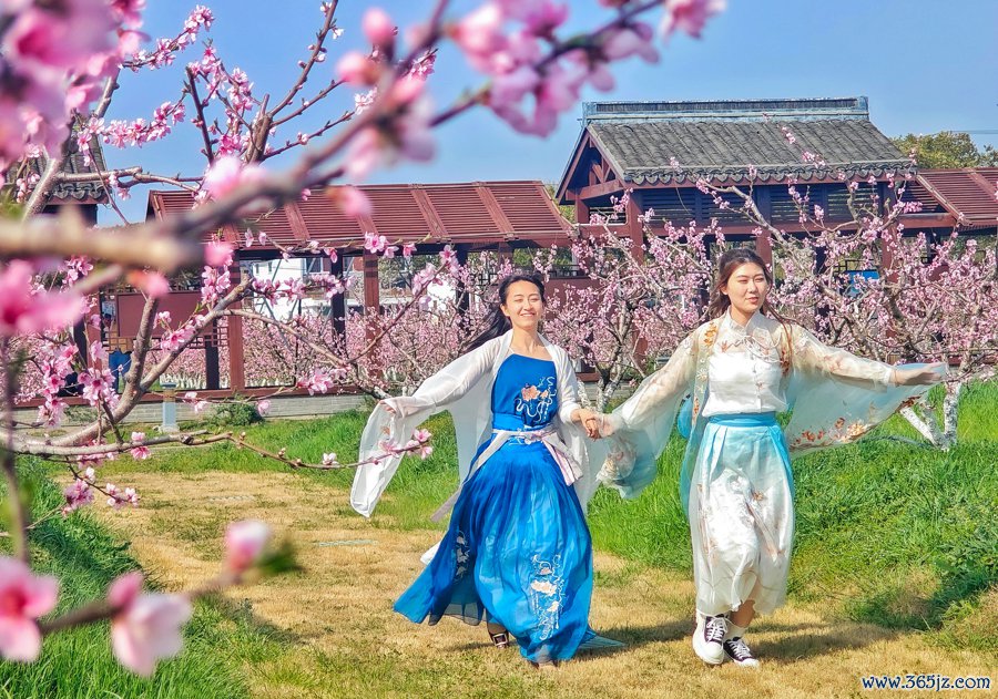 2025年3月24日,金山区吕巷生果公园的桃花竞相怒放,旅客体验十里桃林的诗意画卷。